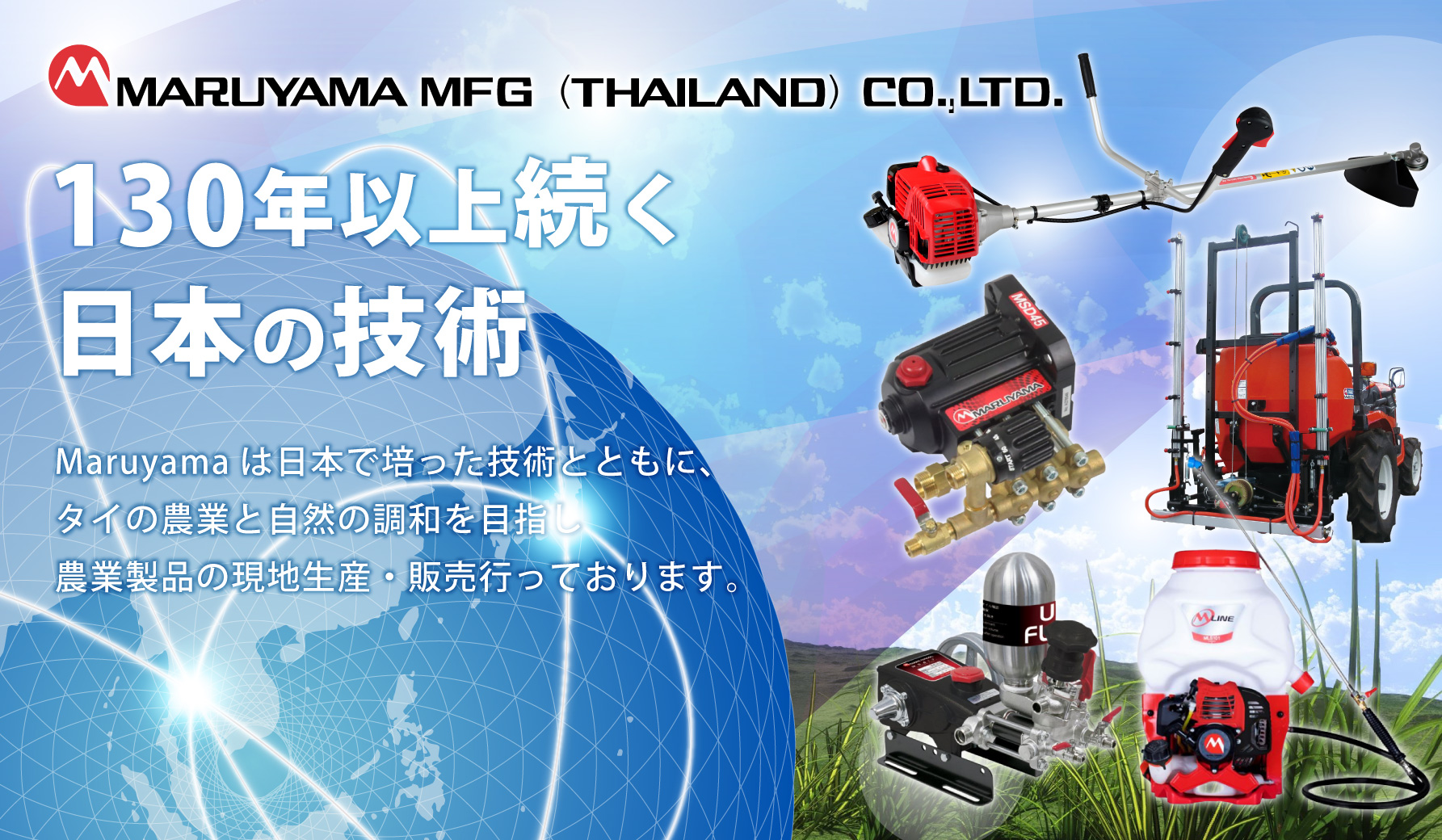 MARUYAMAは日本で培った技術と共に、日本の農業製品をタイで現地生産・販売。