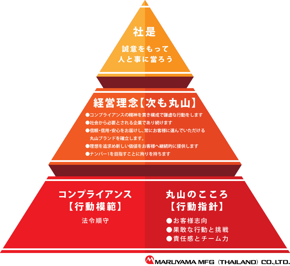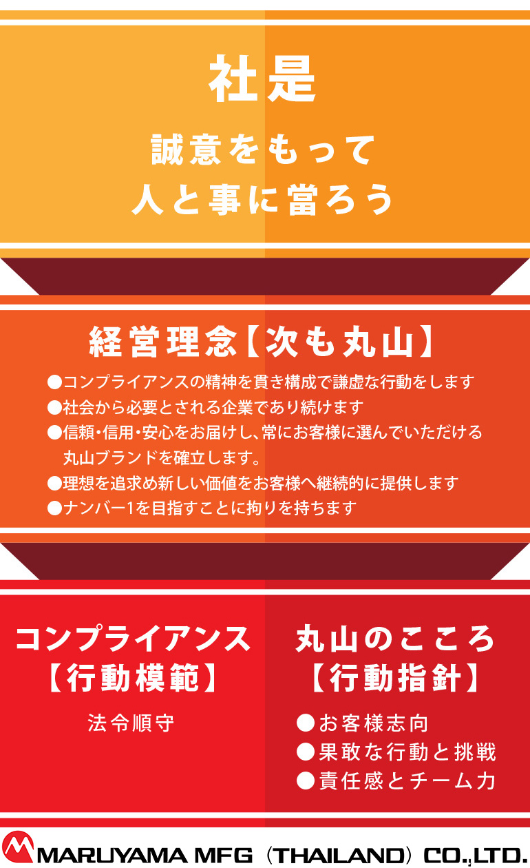 全てのステークホルダーから「次も丸山」と仰って頂くために、企業としてどうあるべきかを定めたものです。